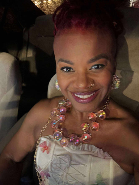 Turn every head in the room with this dazzling AB Iridescent Ball Statement Necklace. Designed to shimmer from every angle, its iridescent finish reflects hues of gold, pink, sapphire, and emerald making it the ultimate showstopper for any outfit.