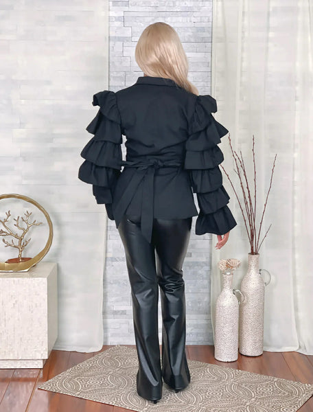 Sculpted Sleeves: Layered detailing that adds instant dimension and a high-fashion edge to your silhouette.